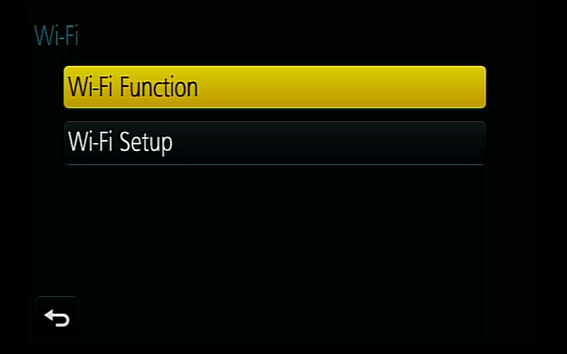 Öffnen Sie das Wi-Fi-Menü Ihrer Kamera und wählen Sie "Wi-Fi-Funktion" und bestätigen Sie Ihre Auswahl entweder mit der Schaltfläche Menü oder verwenden Sie den Touchscreen (falls auf Ihrer Kamera verfügbar).