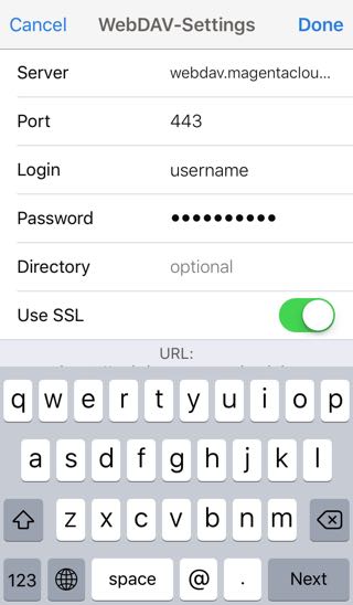 Please note that Deutsche Telekom customers may need to set a specific WebDAV-Password according to the MagentaCloud documentation
